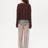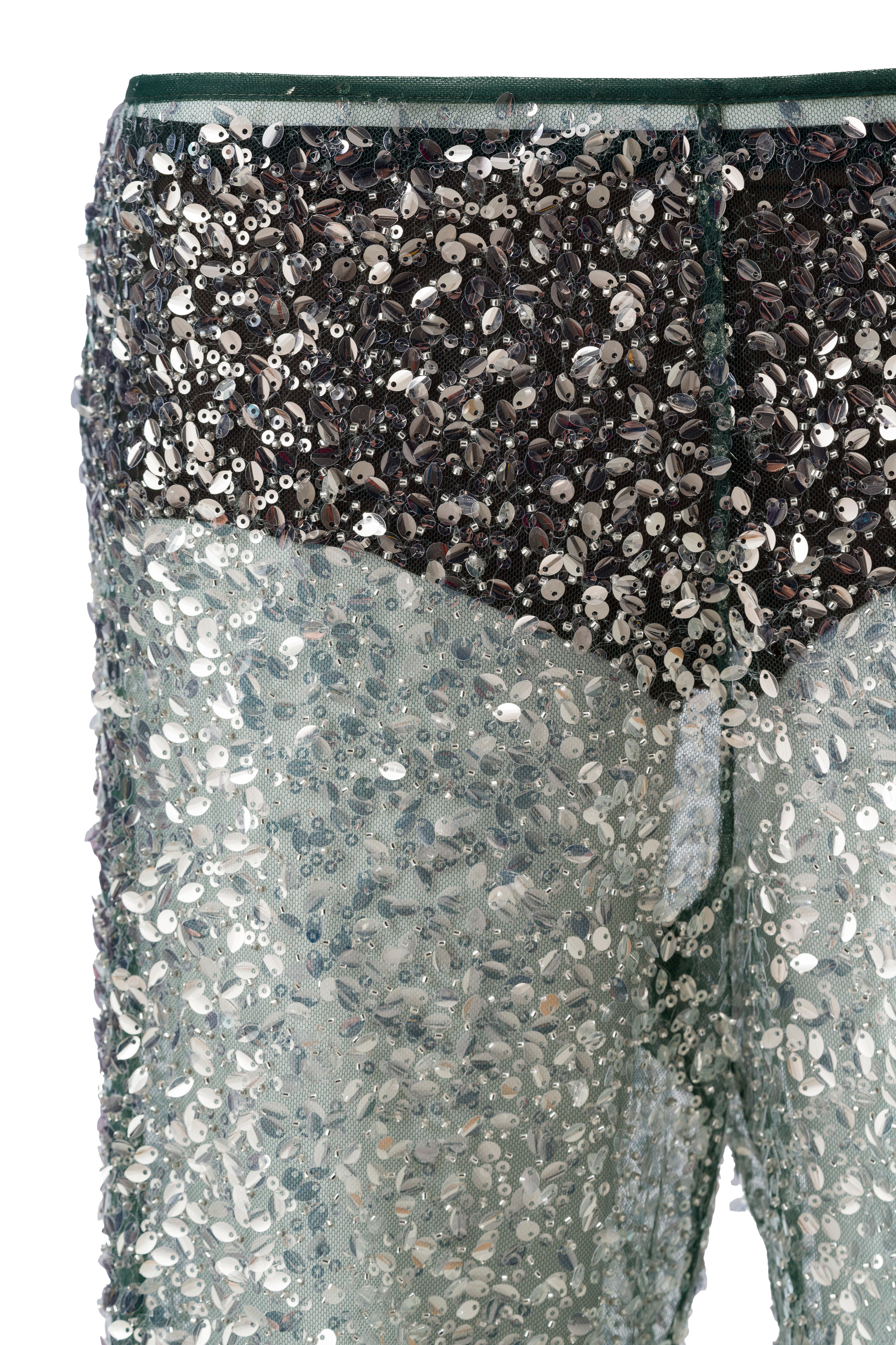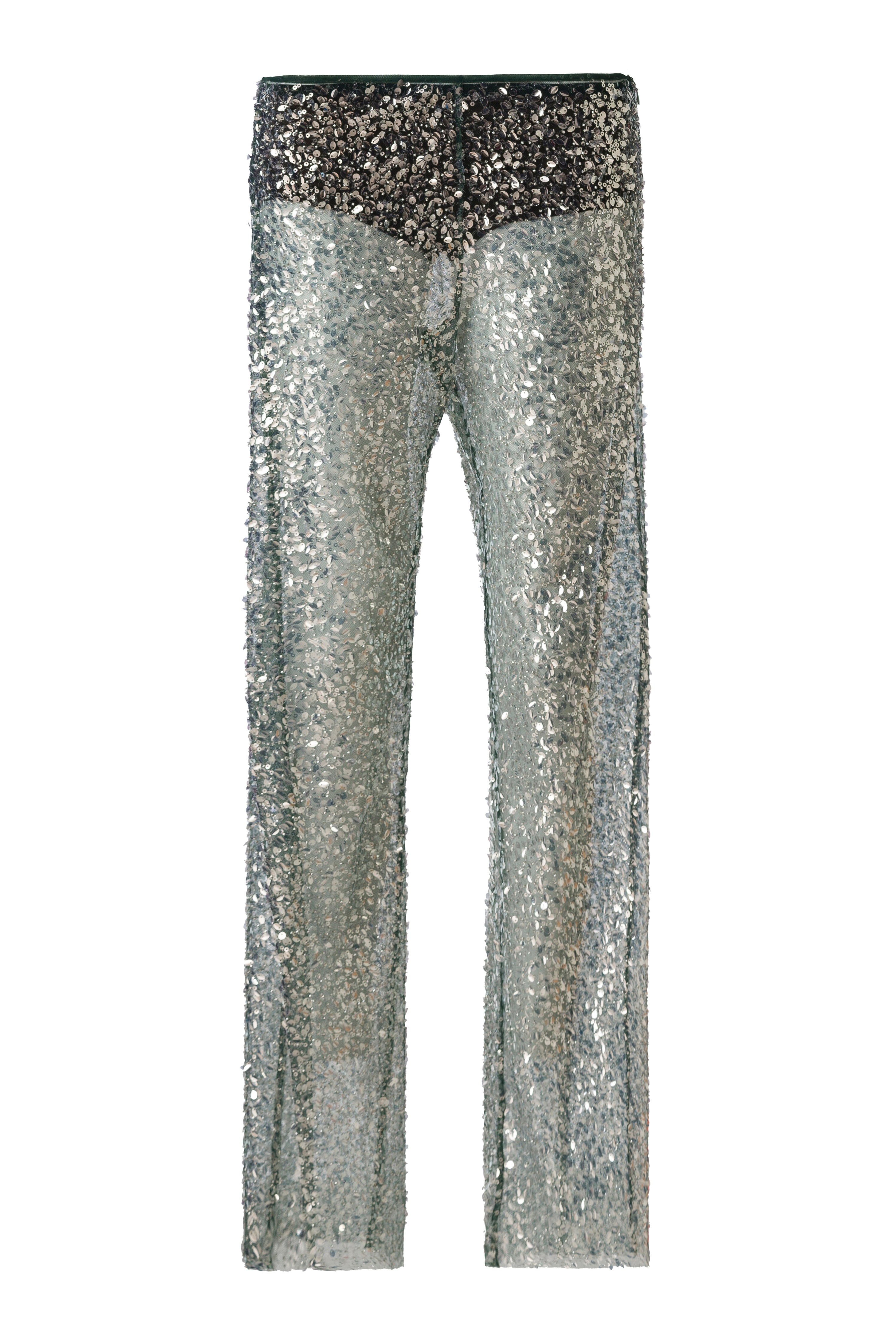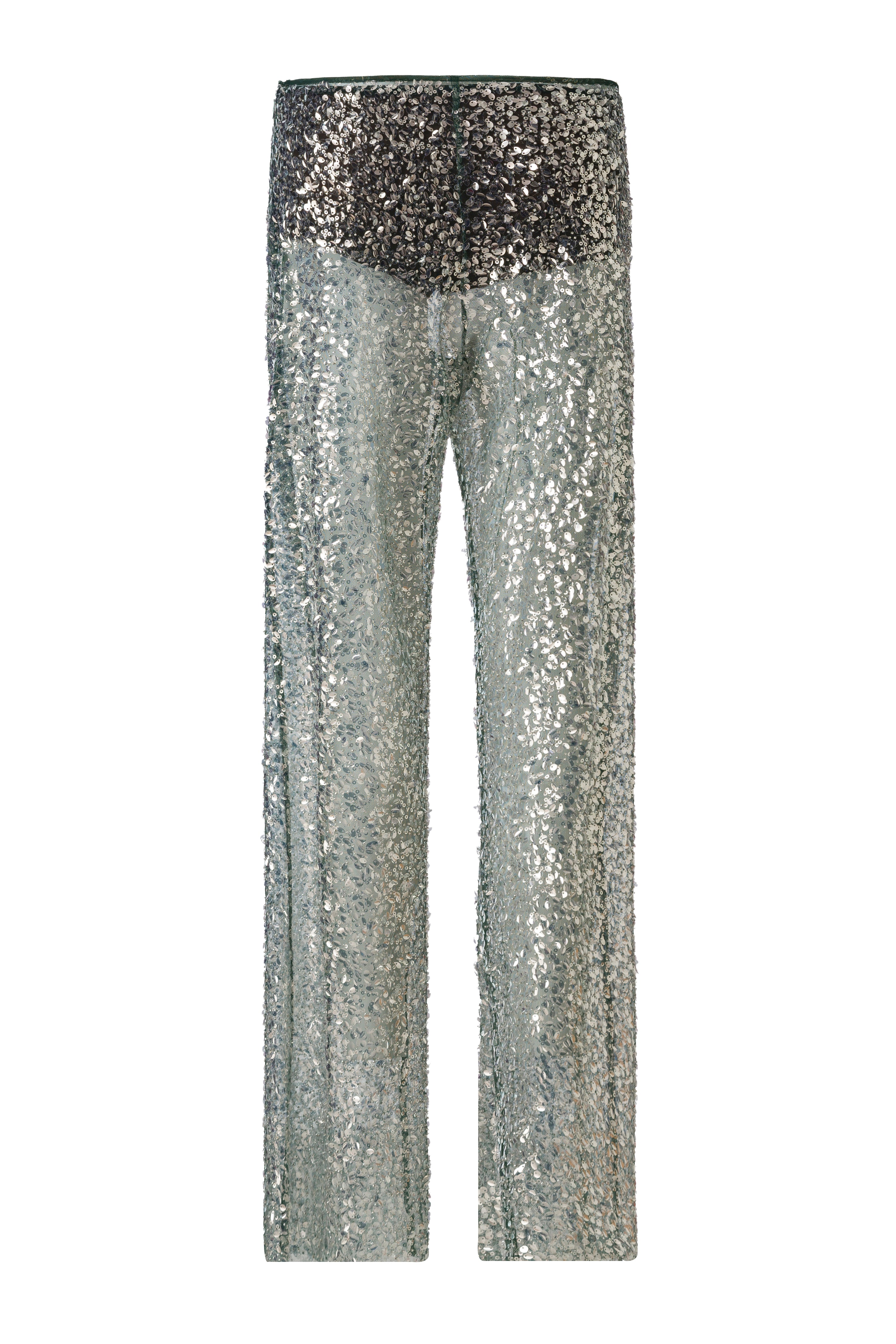 Sequined semi-sheer pants with mini shorts