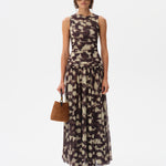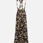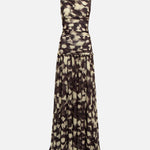 Open-back ruched printed mesh maxi dress