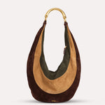 Oversized suede hobo bag with metal top handle