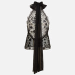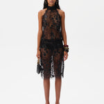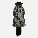 - Floral embroidery with bead and sequin embellishment over sheer tulle base