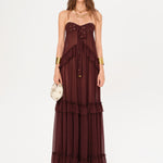 - Tiered ruffle detailing with gold-tone stud embellishments