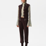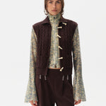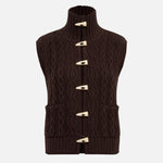High-neck cable knit vest with front pockets