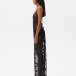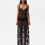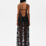 Embroidered open back maxi dress with mini shorts