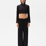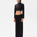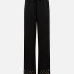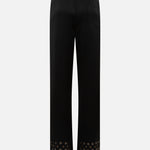 Wide-leg drawstring satin pants embroidered hem