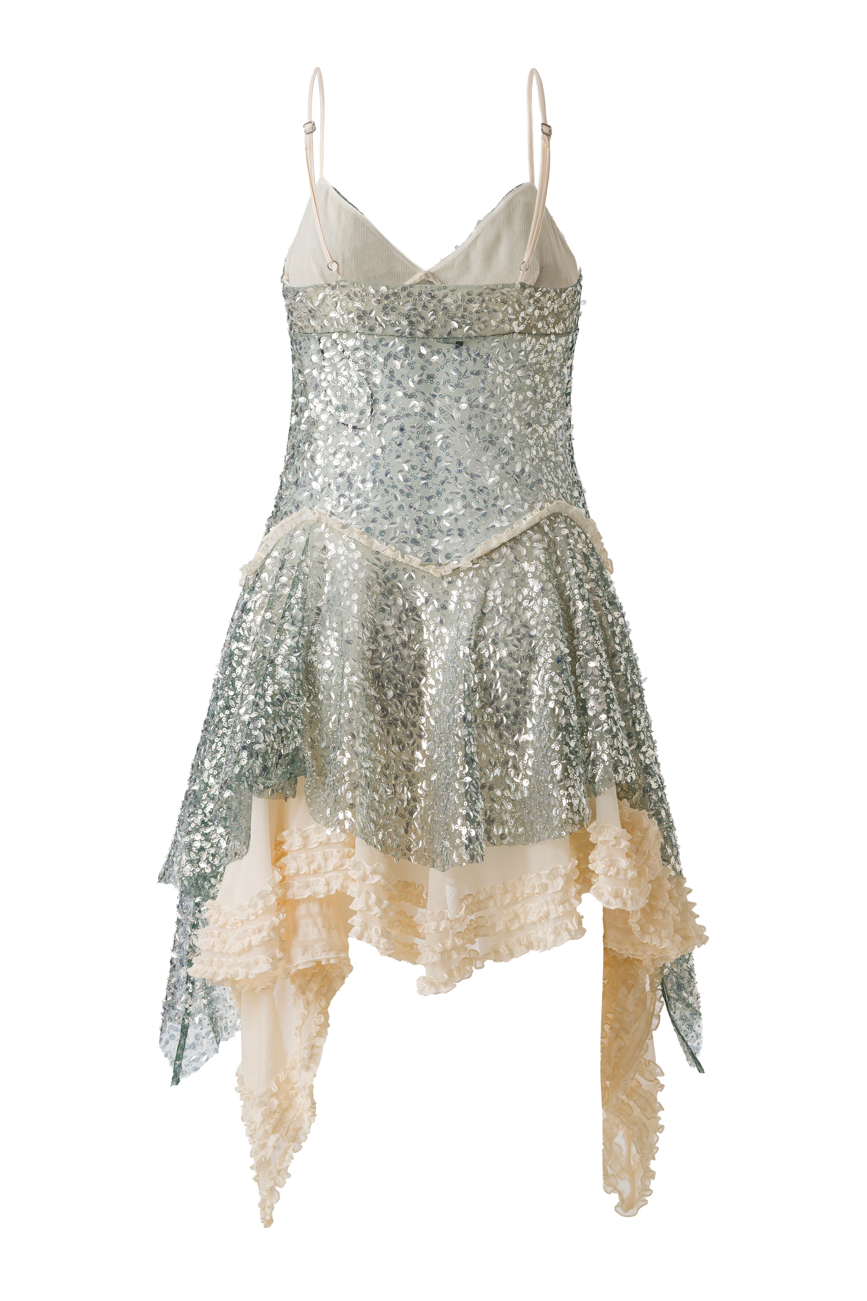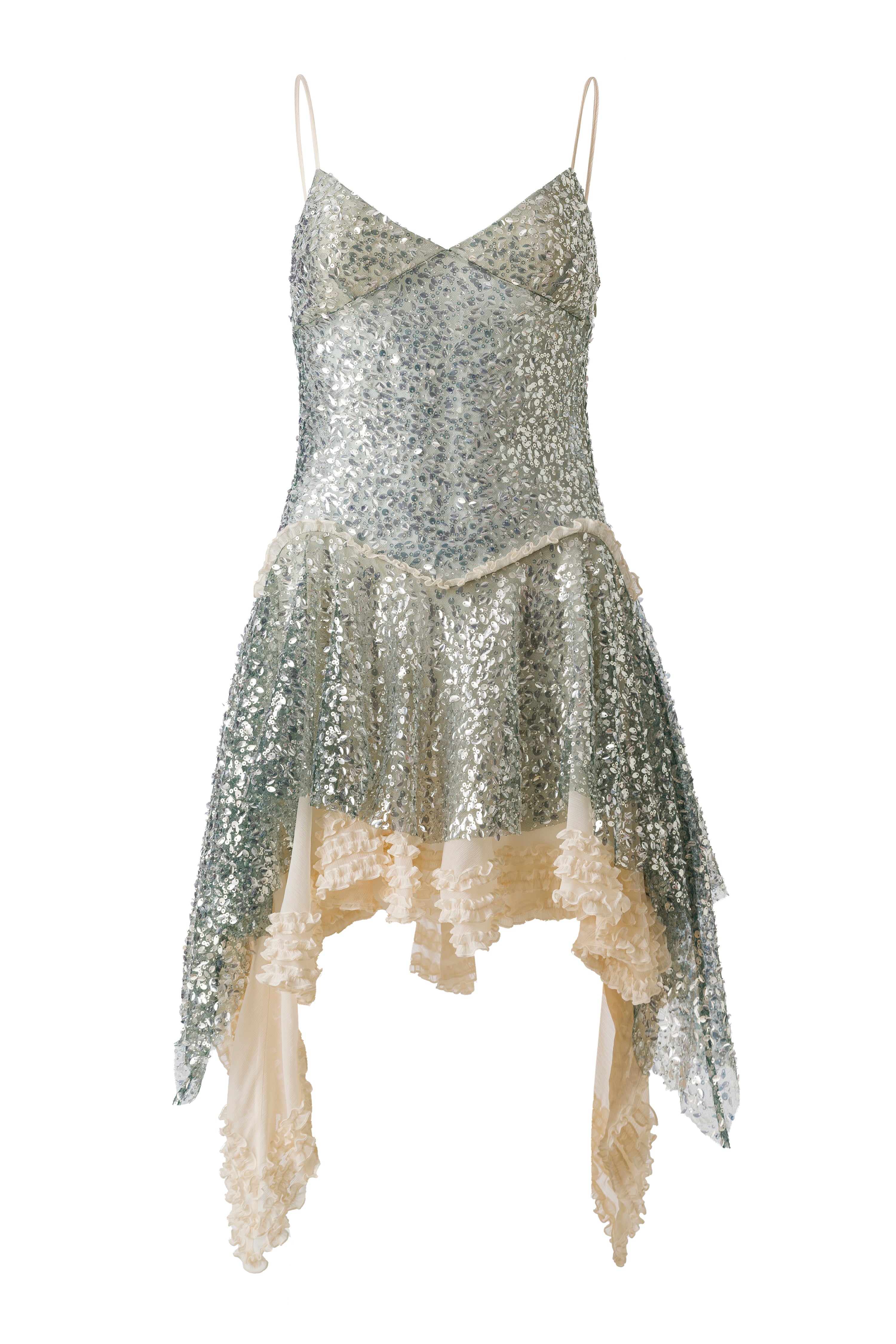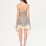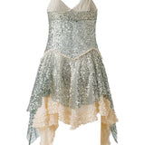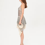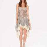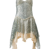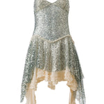Asymmetric sequined mini dress with lace layer