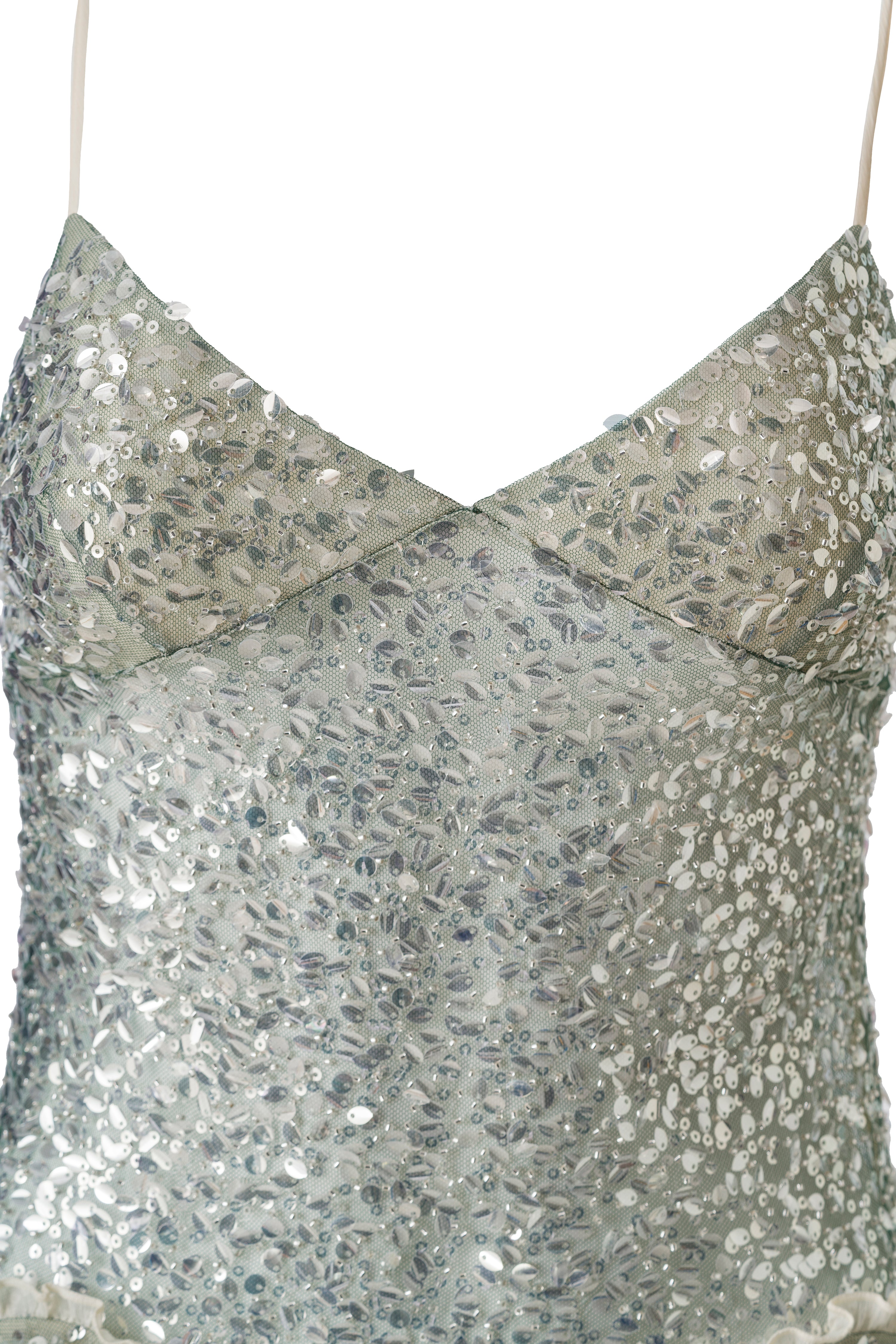 - Deep V neckline and spaghetti straps