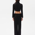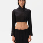 Satin cropped shirt with embroidered sleeve cuffs