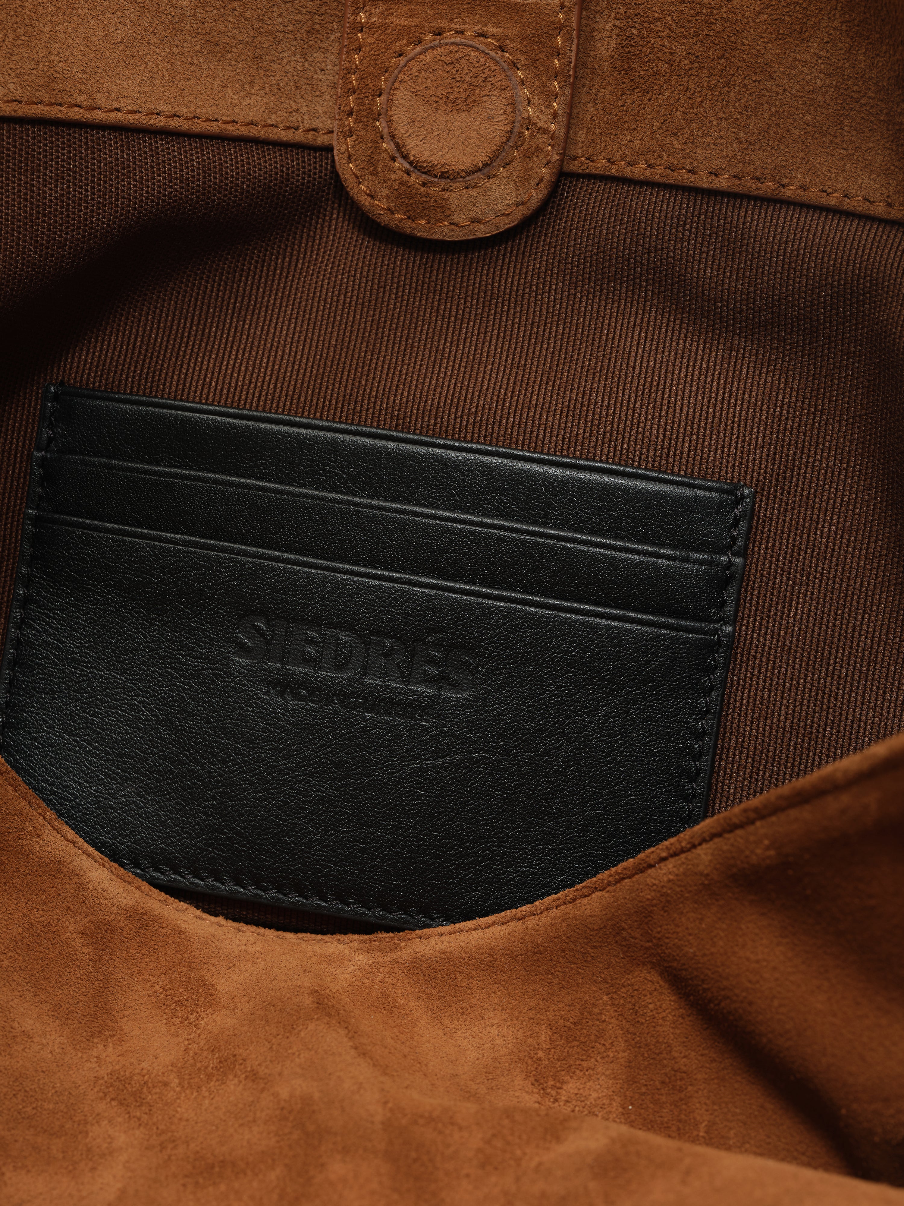 Main body: Calf Suede Shoulder strap: %100 Calf Leather Gabardine Lining