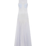 Mock neck jacquard flower detailed sheer knit dress
