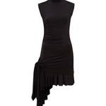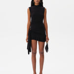 Sleeveless jersey dress with side tie and ruffle details