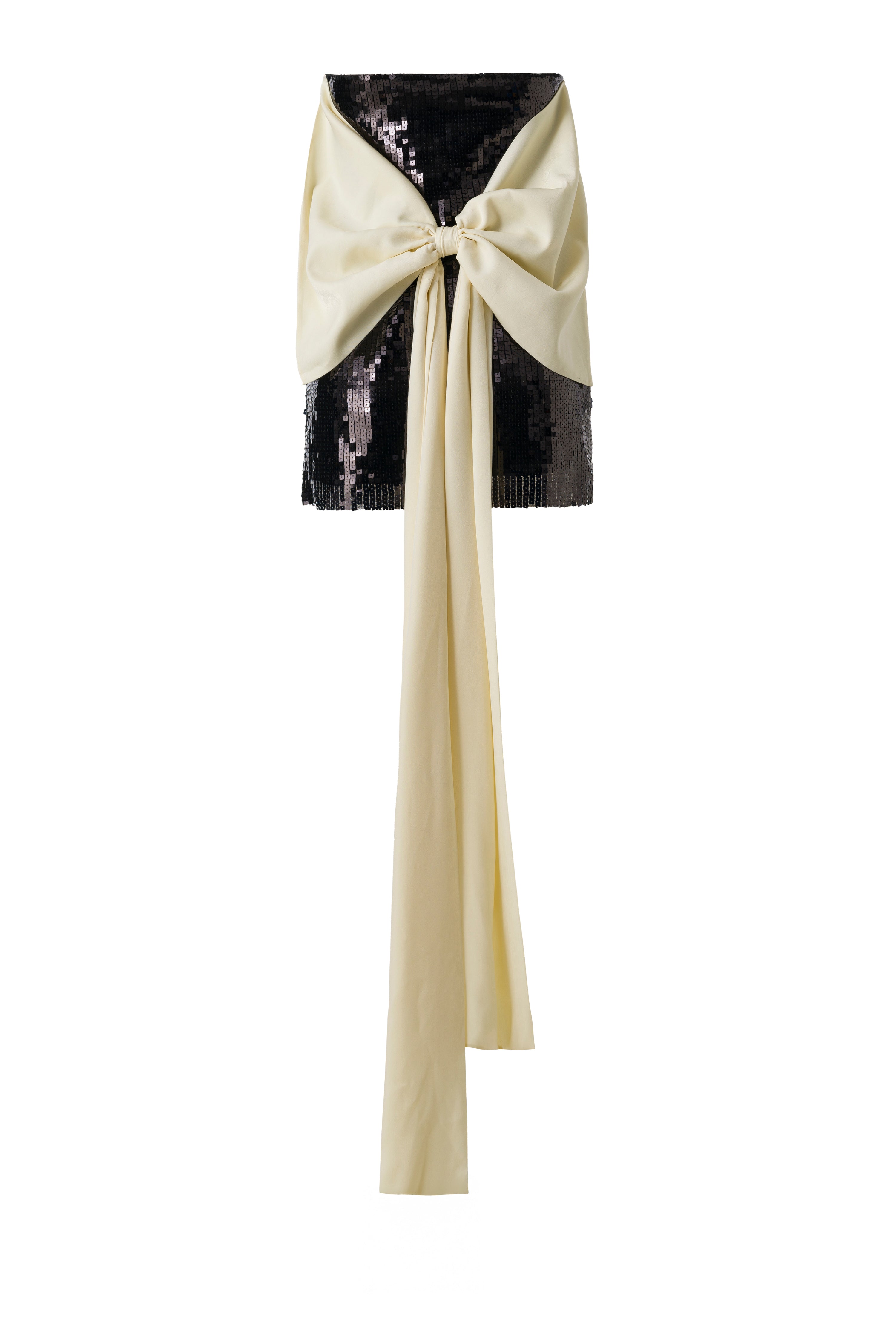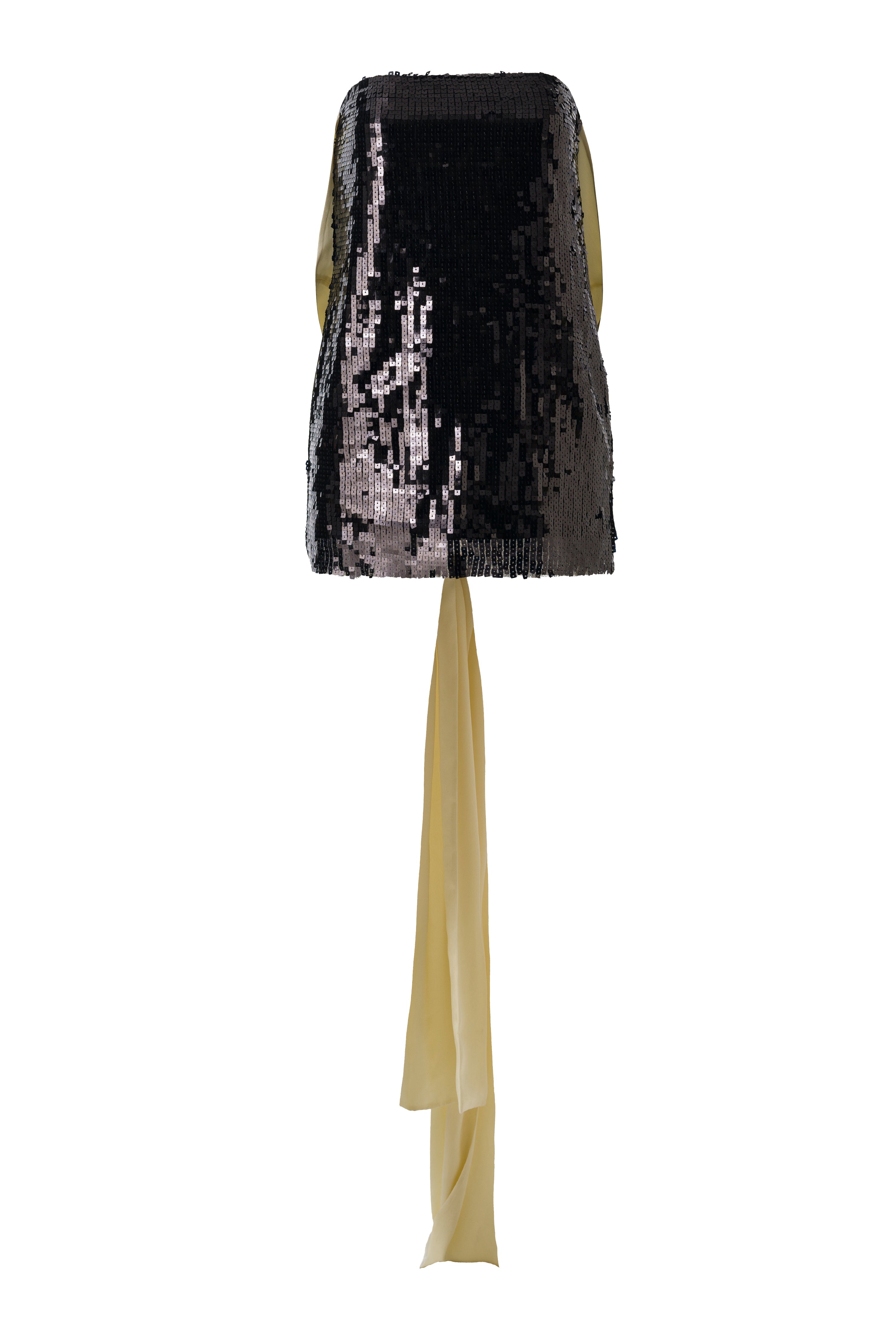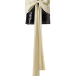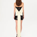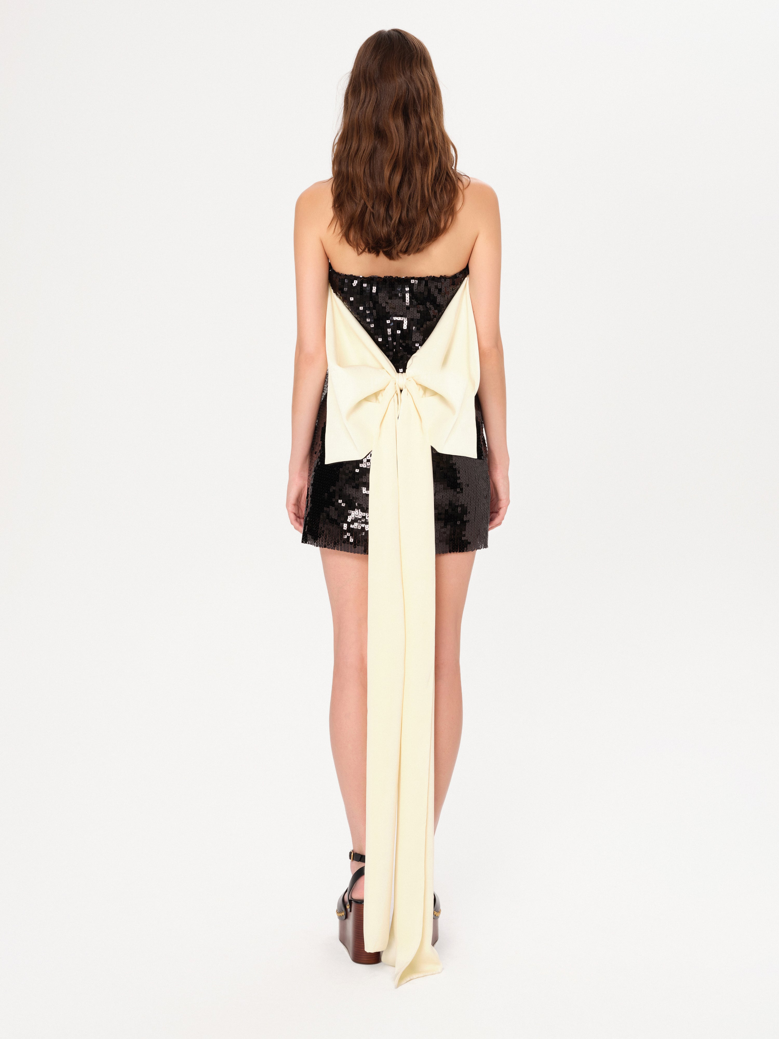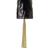 Mini sequined dress with long tie-bow