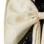 - Satin bow and extended sash detail