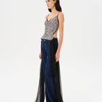 Embellished sequin top with a deep V neckline
